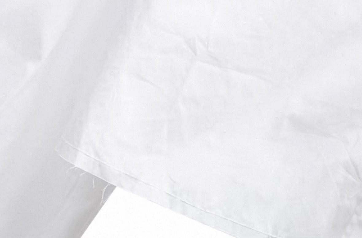 This white cotton button up shirt is a stylish addition to any wardrobe. With a raw cut hem, it offers a unique and edgy twist to a classic design. Made from high-quality material, this shirt is comfortable and versatile, making it perfect for any occasion. Elevate your style with the Amanda Shirt.