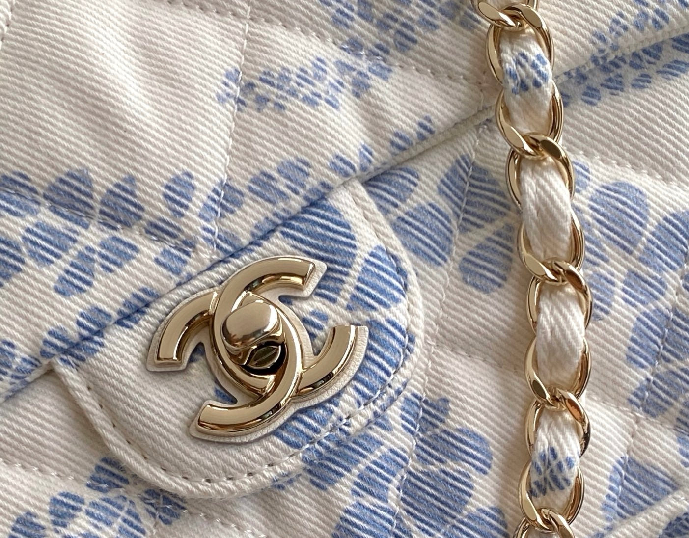 The Allegra Bag is a stylish flap bag featuring a durable denim construction adorned with a floral print, ideal for summer occasions. Its chain strap offers versatility in wear, allowing for both shoulder and crossbody use. This combination enhances functionality while maintaining an appealing aesthetic.