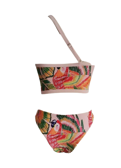Expertly crafted with a tropical jungle print in vibrant pinks, the Fern Bikini Set stands out as the perfect addition to your beach wardrobe. This set also includes a matching skirt with tassel trim, adding a touch of bohemian flair to your beach day look. Embrace the exotic and elevate your beach style with this stunning bikini set.