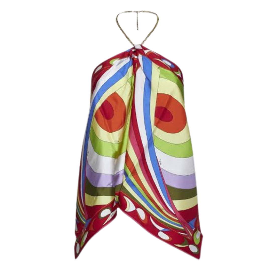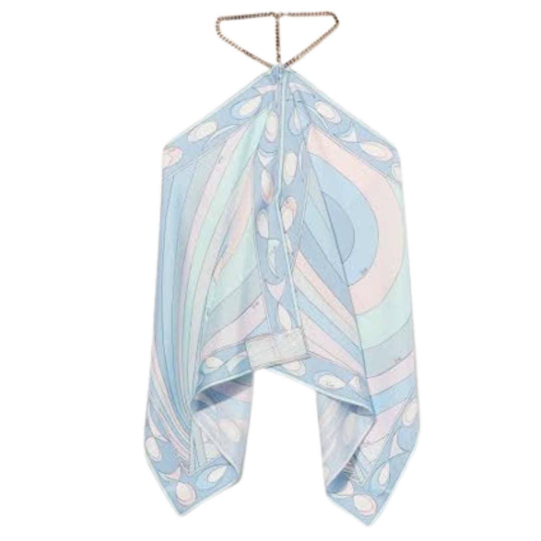Expertly designed for a sleek and sophisticated look, the Gail Halter Top features a luxurious satin fabric and a chic halter scarf design. With a secure chain closure at the neck and back, this top offers the perfect combination of style and comfort. Elevate your wardrobe with this must-have piece.