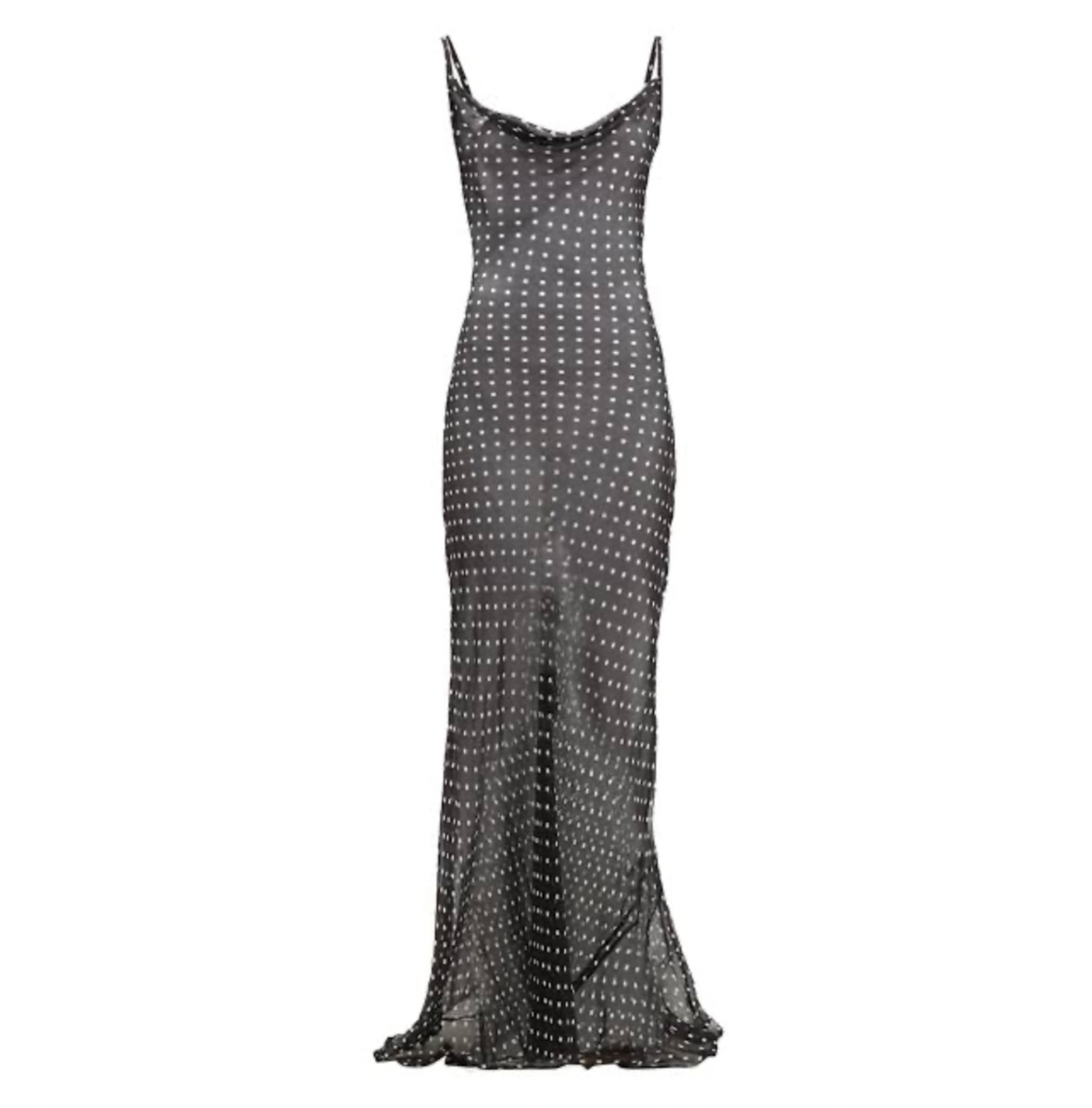 This Garcelle Dress is perfect for any occasion. Crafted with a bias-cut semi-sheer maxi polka dot print, this attractive dress will look great and feel comfortable no matter where you wear it.