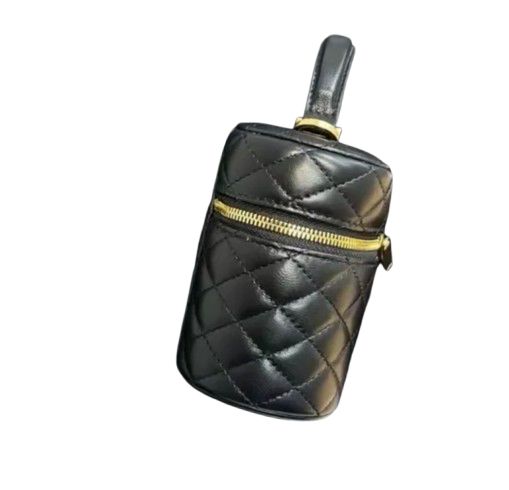 The Gretchen Vanity Bag is a professional and functional accessory for your travel needs. Made with a sleek black design and equipped with both a top handle and detachable long strap, it offers versatility and convenience on-the-go. Keep your essentials organized and at your fingertips with this stylish and expertly crafted vanity bag.