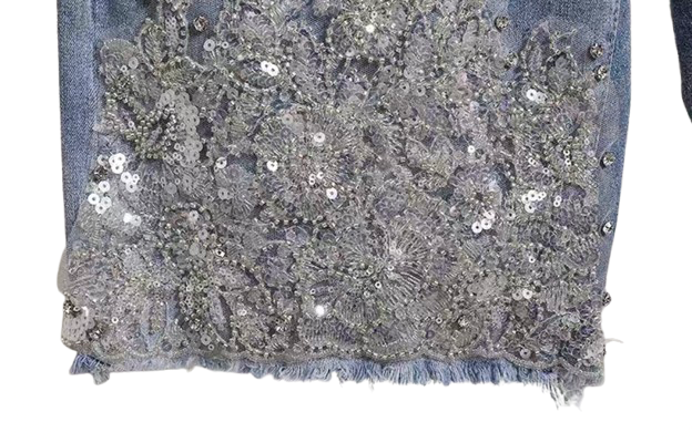 Expertly crafted for both comfort and style, the Izzy Shorts are the perfect addition to your wardrobe. Made with high-quality denim fabric, these long shorts feature beautiful embellishments on the lower portion for a touch of elegance. Upgrade your summer wardrobe with these versatile and trendy shorts.