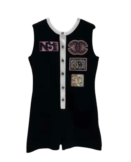 The Kennedy Romper features sequin patches that enhance visual appeal while maintaining comfort and ease of wear. This romper provides a playful yet sophisticated look, suitable for various occasions. The use of sequins reflects light, potentially increasing visibility in low-light settings, making it a versatile addition to any wardrobe.