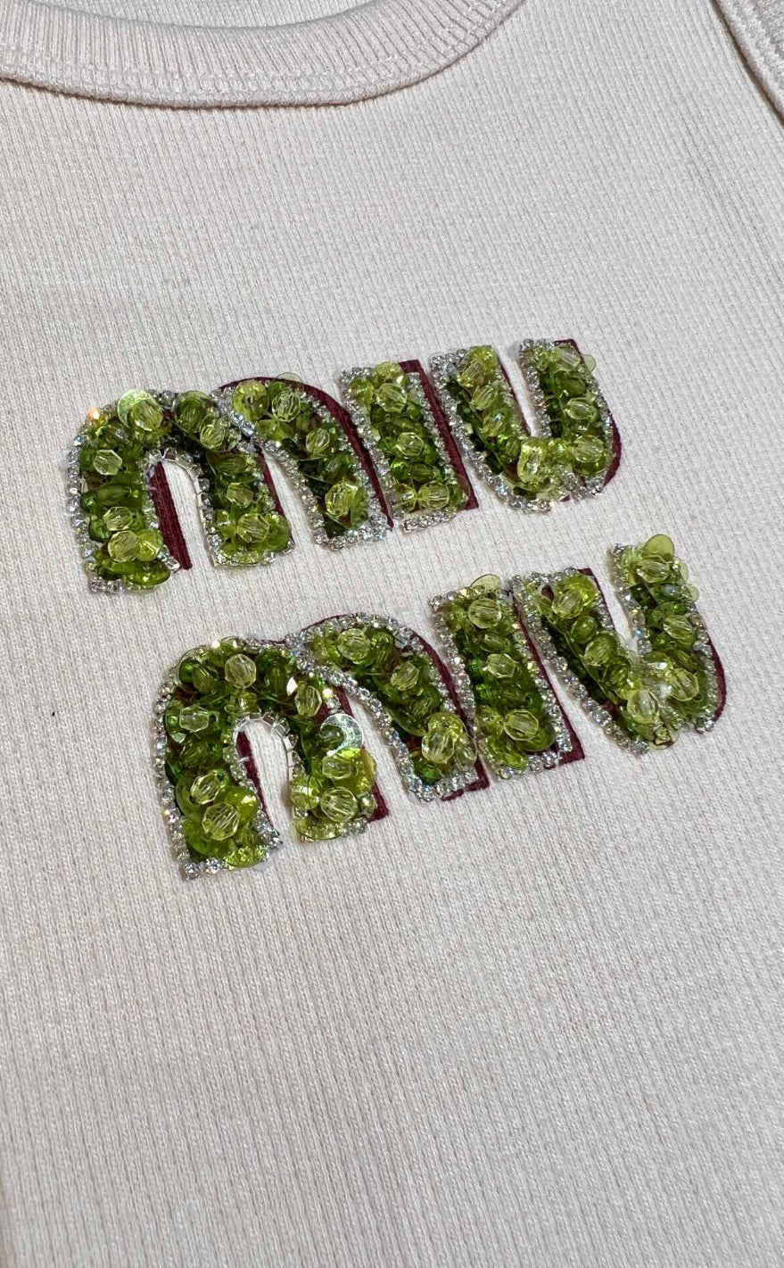 Crafted with a luxurious off-white ribbed fabric, the Naya Tank showcases a unique embellished insignia. This tank effortlessly blends comfort and style, perfect for any occasion. Elevate your wardrobe with this versatile piece.