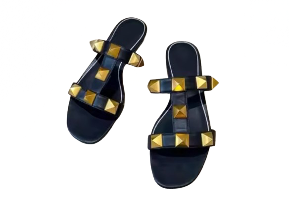 Simplify your summer wardrobe with the Olivia Slides. These stylish slides feature chunky gold studs for a touch of glamour, perfect for day or night. With their effortless slip-on design, you can easily elevate any outfit with these versatile and comfortable slides.