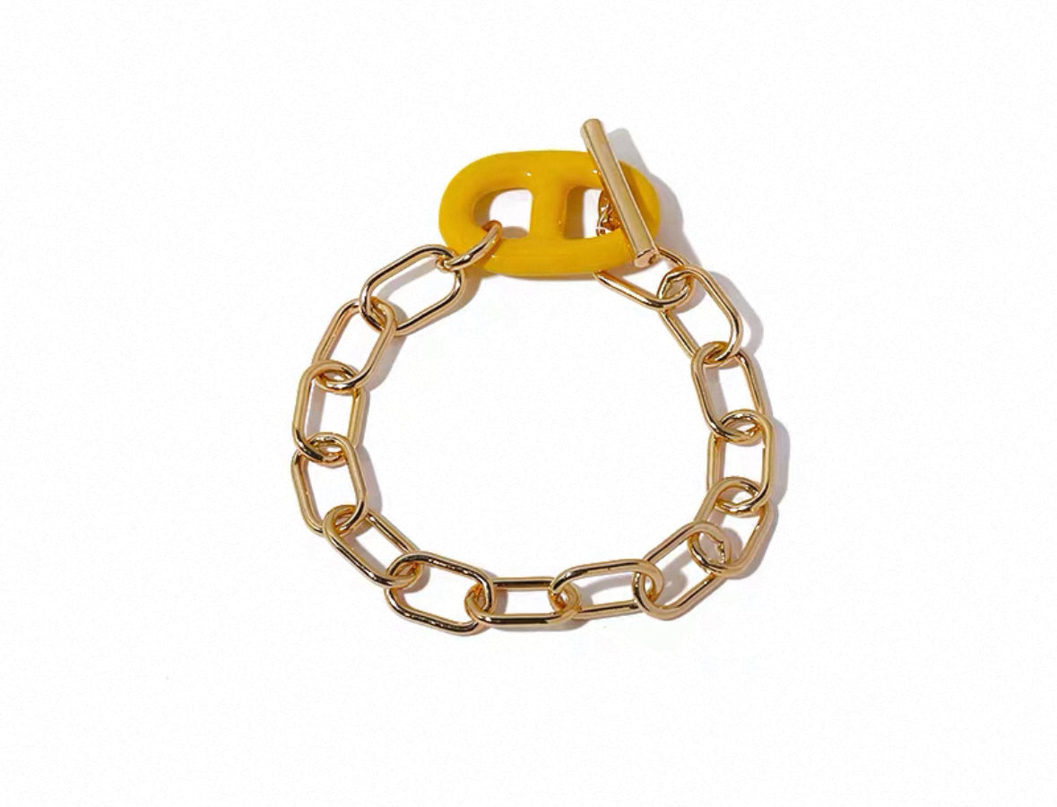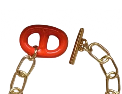 Expertly crafted, the Rosario Bracelet features a 17.5cm chain link design that adds a touch of elegance to any outfit. The bracelet is finished with a colorful link and fob for a unique and stylish closure. Elevate your look with this must-have accessory.