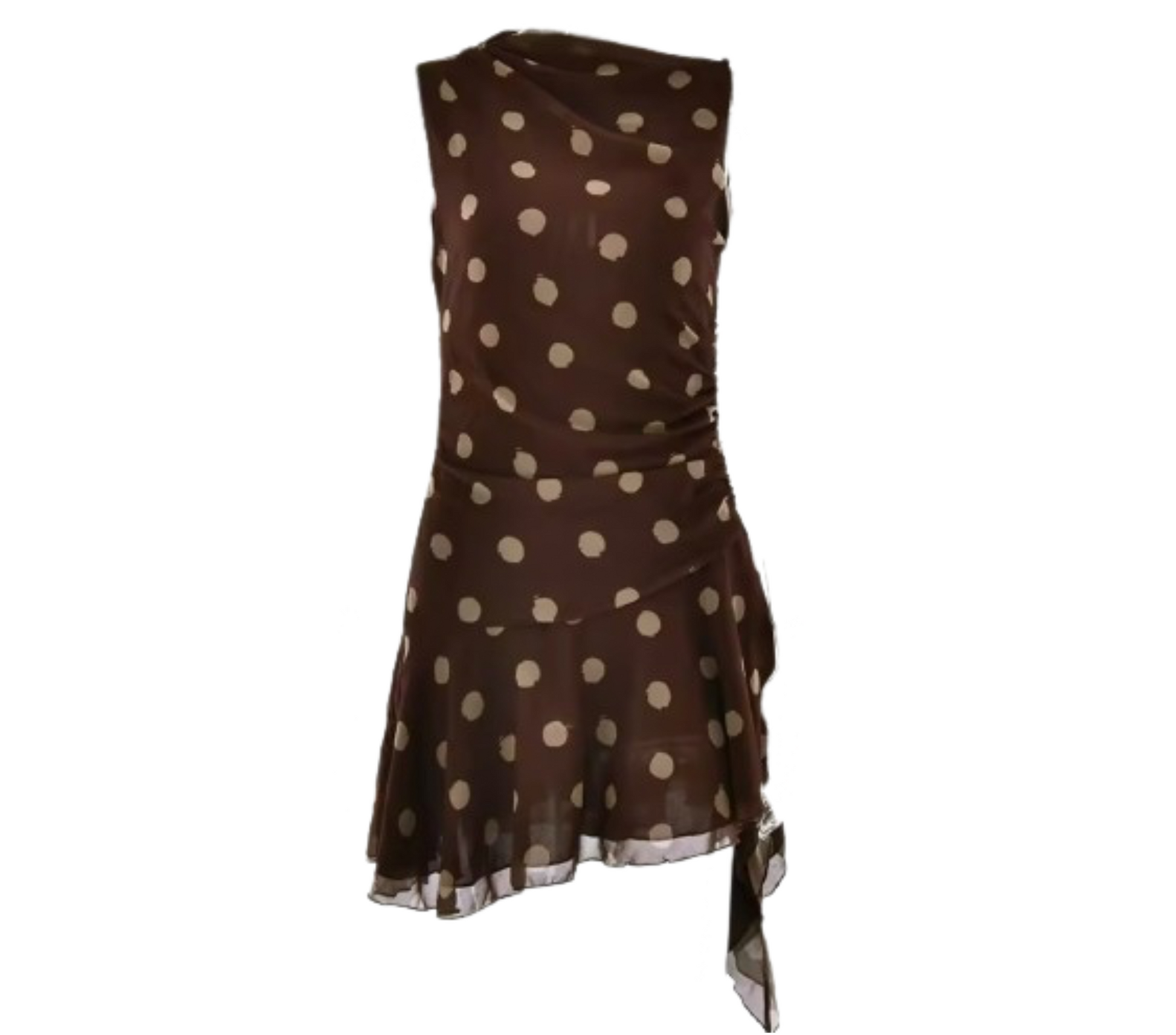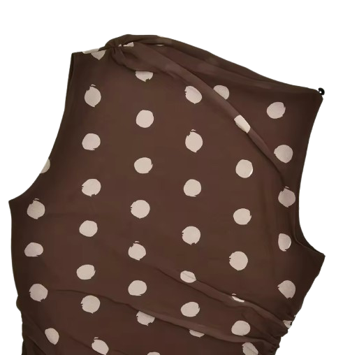 Introducing the Theodora Dress, a stunning mesh layered mini dress featuring a trendy brown polka dot print. This dress is perfect for any occasion, giving you a touch of elegance and style. The lightweight fabric offers comfort while the polka dot print adds a fun and playful touch.